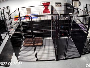 We offer daily boarding for your dog(s). They stay in individual kennels or together in a large kennel if the dogs are from the same household. Kennels are monitored via closed circuit cameras, have heat and air conditioning and their outside playtime/potty breaks are monitored in person in an enclosed outside area. We DO NOT offer playgroups with dogs that do not know each other for safety reasons.